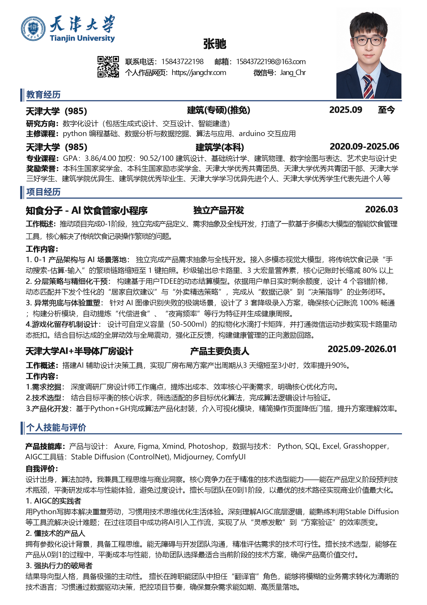 习惯用技术手段优化工作流,熟练运用各类 AI 工具解决实际问题,并在过往项目中成功将大模型引入产品闭环。